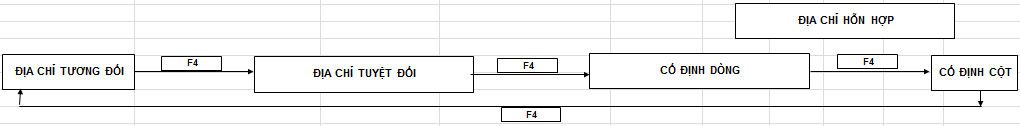 Hình sau đây trình bày cách thiết lập các loại địa chỉ trong Excel, cũng như cách chuyển đỗi giữa chúng