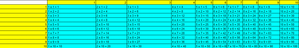 Bài thực hành số 2. Lâp công thức tại một ô (cell) duy nhất sao cho khi thực hiện sao chép công thức kết quả hiển thị theo đúng yêu cầu của bảng cửu chương.